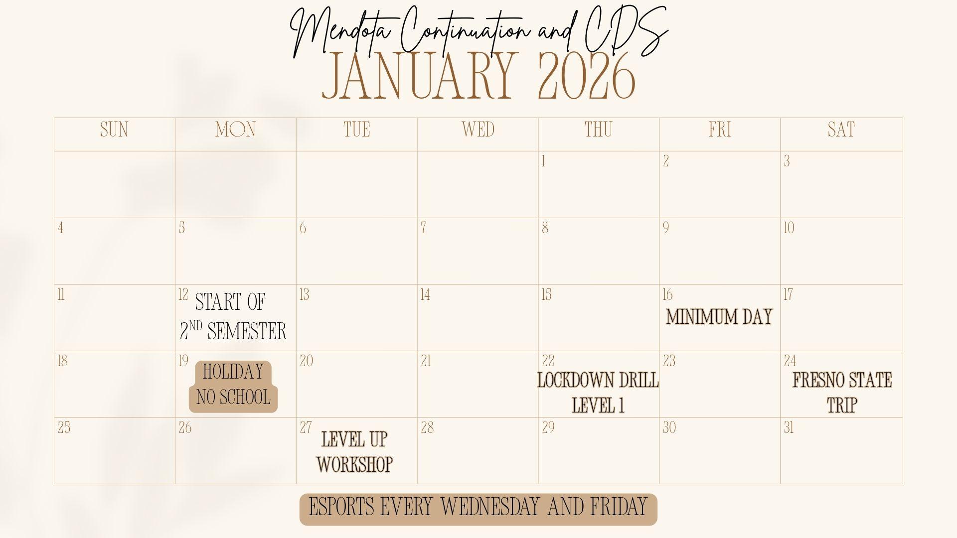 January 2026 Calendar-CTCDS
